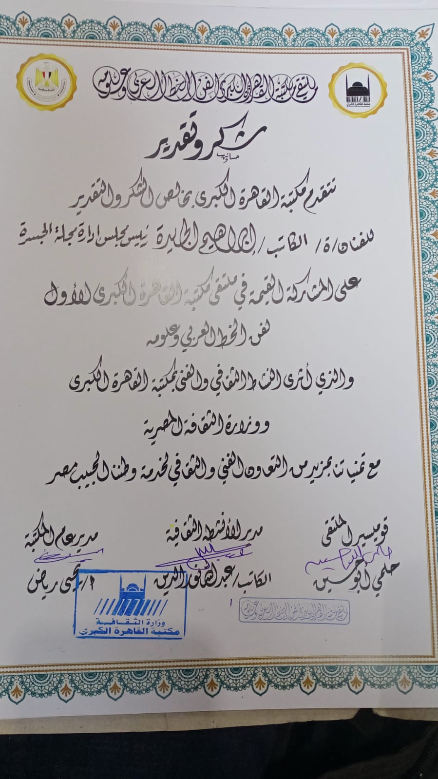 رئيس مجلس إدارة نادي الجسرة يشارك في فعاليات ملتقى مكتبة القاهرة الكبرى لفن الخط العربي